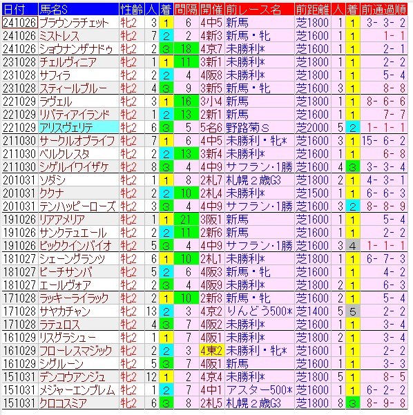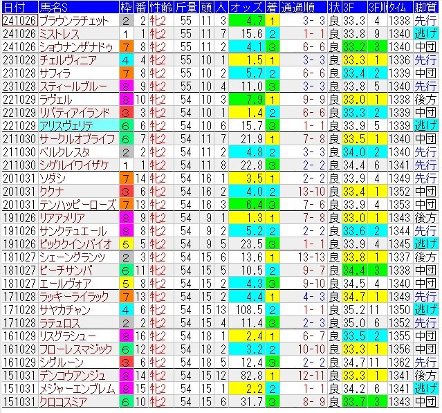 2歳牝馬による東京マイル戦・・・となればスローの瞬発力勝負がデフォルト。なにより東京向けのキレが重要。上がり1位がとんでもない強さになってるのはそういうわけですな。イメージとしては1000mが60.0~61.0で上がりが33秒台という感じ。ただ、逃げ・先行馬も相当数馬券になるので注意が必要。
