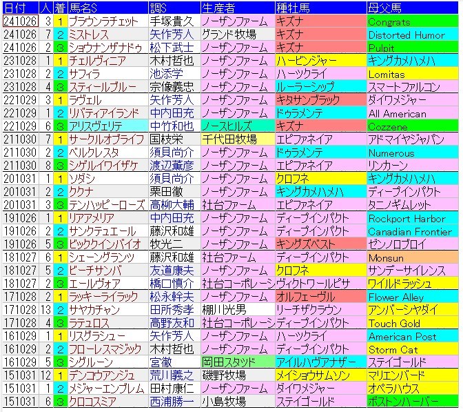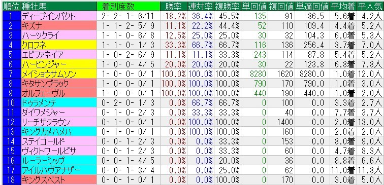 ディープインパクトを筆頭にサンデーサイレンス系、それからノーザンダンサー系が良く来てるね。ミスプロ系は劣勢。
