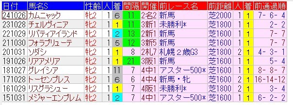 カムニャックは昨年ここで1番人気だったんだねえ。あ、ソダシも1番人気だったのか。しかしココを1番人気で勝ち負けした馬は錚々たるメンバーだね。メジャーエンブレム、リスグラシュー、ソダシ、リバティアイランド、チェルヴィニア。後のGⅠ馬がずらり。さて、札幌からの臨戦で勝った1番人気はソダシだけだが・・・妹のマルガはどうかな?