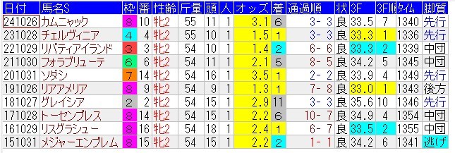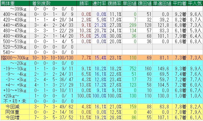2歳秋の牝馬戦というわけで、馬格はあまり気にしなくていいが・・・・最低ラインは420kg。馬体の増減は「馬体増」が優勢。