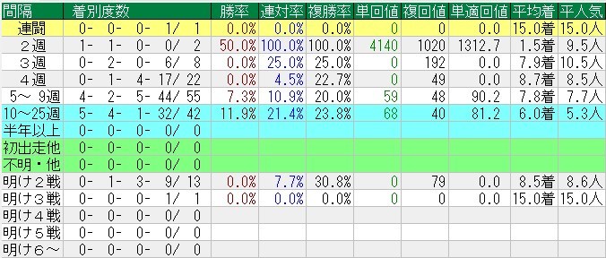 休み明けでも全く問題ナシ。間隔詰まってる馬にも注意が必要。