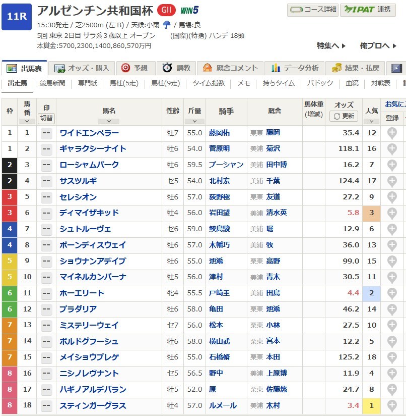 【アルゼンチン共和国杯2025予想】東京芝2500mで行われるハンデGⅡアルゼンチン共和国杯!今年はスティンガーグラス、ホーエリート、ディマイザキッドが人気だが当然大穴狙いで逝く!展開・隊列・ペースはどうなる?逃げるのはミステリーウェイ?この馬の単騎逃げだとスローになる?馬場バイアスは?浅次郎の狙いはこの馬だ!