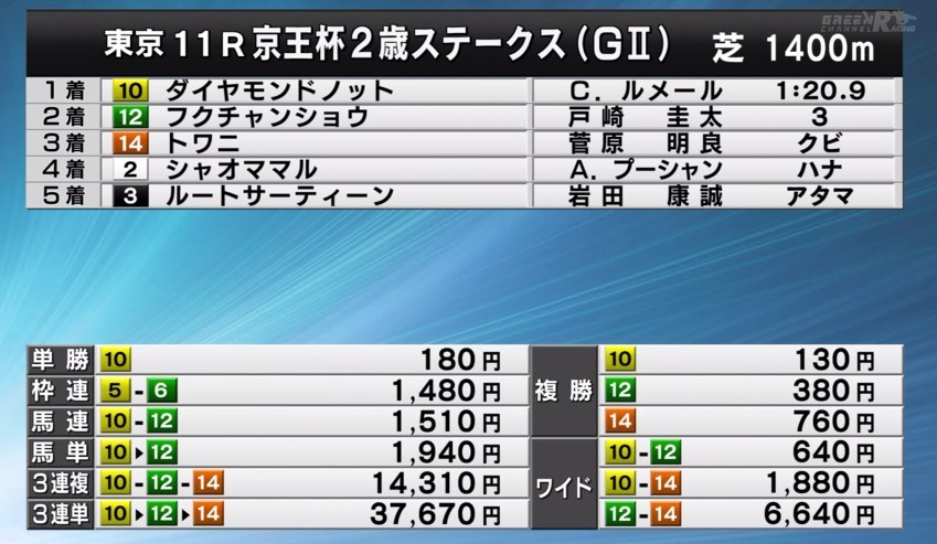 昨日の京王杯2歳Sは・・・