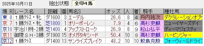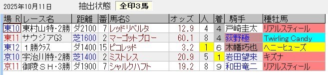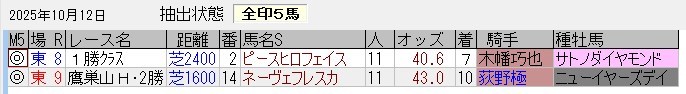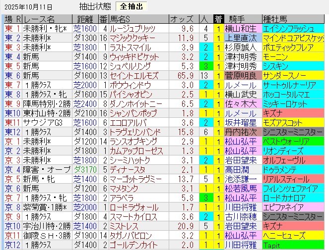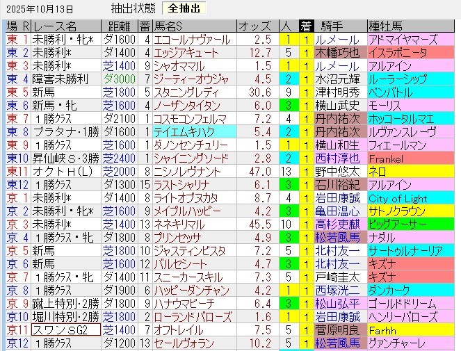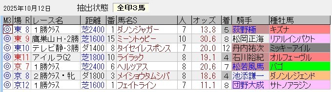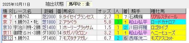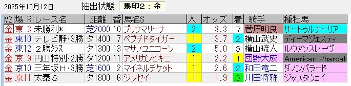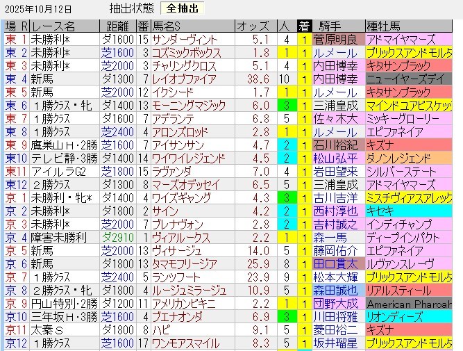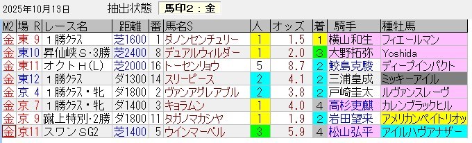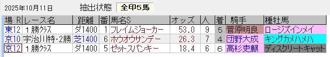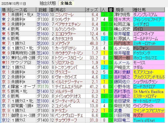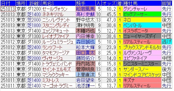 時々荒れてるのはほとんどが2歳戦で全体的に堅いDAY。穴党には辛い一日だった。