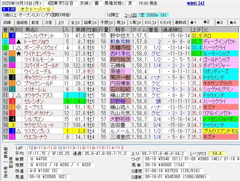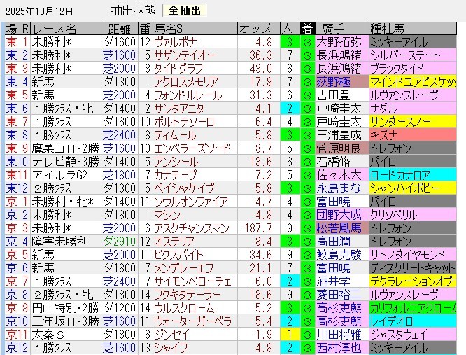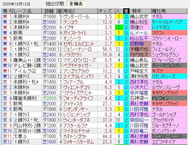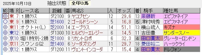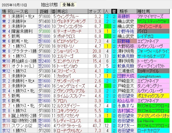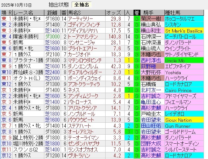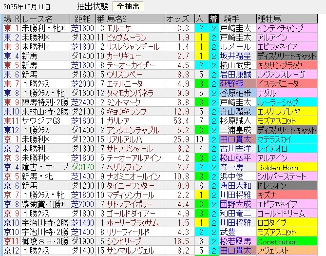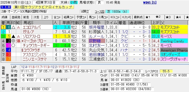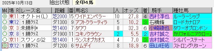 京都はそこそこ荒れたが、2歳戦や下級条件ばかり。東京は鬼堅。前日に続き穴党には厳しい一日だった。