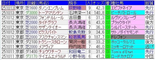 3着は3歳のランスオブカオス。最内枠から前々でほぼ完璧な競馬をしたが、やはりペースが速かった分最後は苦しくなったか。それでも内のウインマーベルは交わしてるのでね。休み明けの前哨戦としては上々だろう。同じく好位からほぼ完璧な競馬をしたのが4着のウインマーベル。残り100mで先頭に立ったが、やはり最後に苦しくなったのは展開面によるものだろう。先行して掲示板に載ったのはこの2頭のみ。この2頭は本番で買いやすくなったねえ。
