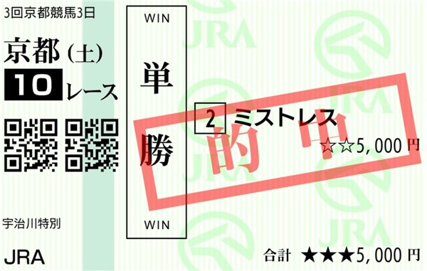 京都10Rでミストレスが見事1着!これは良かったねー。