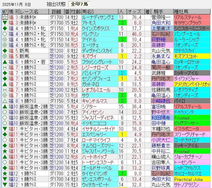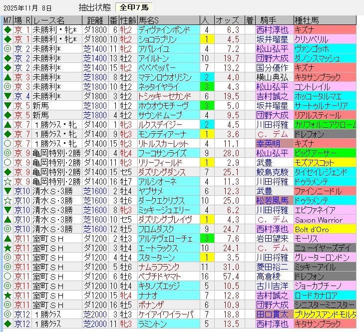 水色マーカー・・・1週前、2週前あるいはそれ以前に好時計を出している馬。