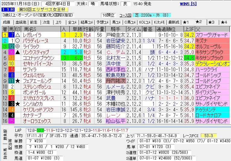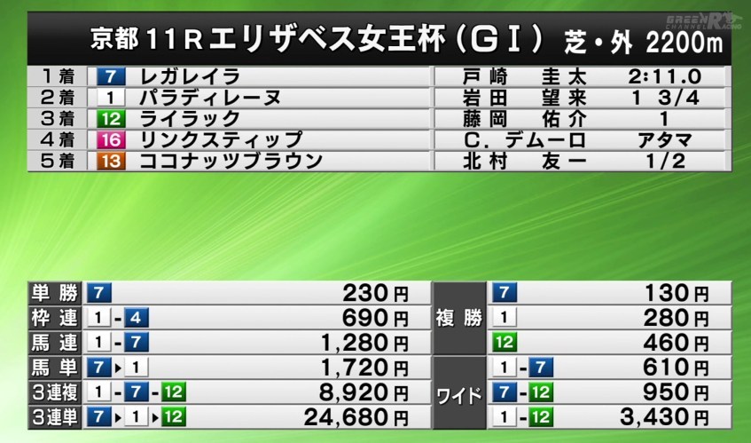 昨日行われたGⅠエリザベス女王杯は・・・