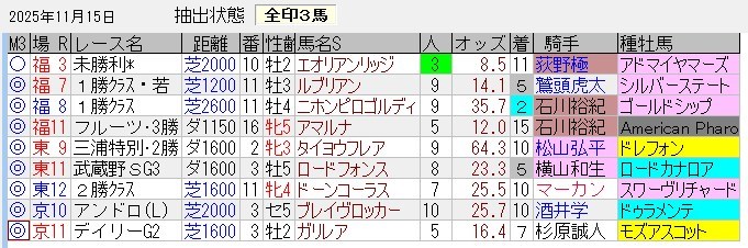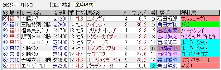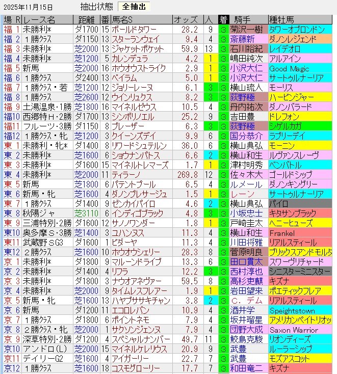 ・土曜日の1~3着馬