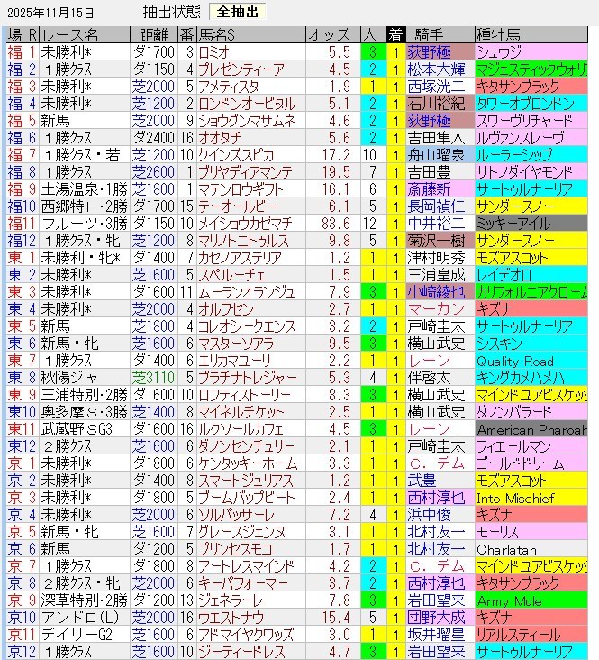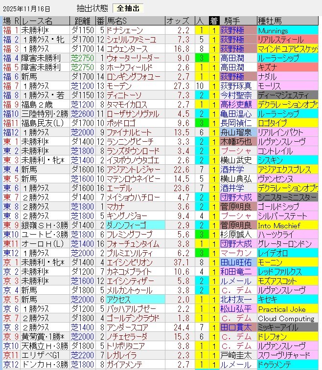 福島8Rで大穴の2着はあったが、全体的にイマイチ。ただ、この日の東京・京都はガチガチだったんだよねえ。