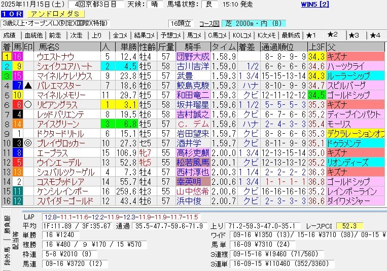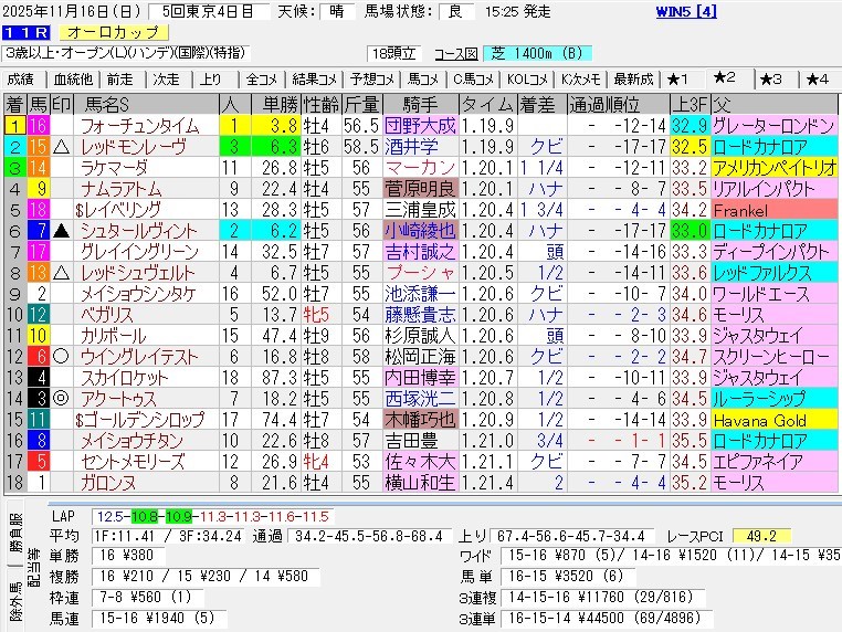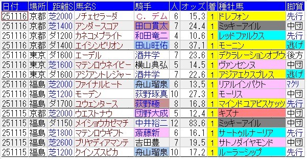 この傾向が来週も続くのなら面白いんだが・・・残念ながら来週からCコース。最終週にはジャパンカップも行われるからね。JRAの造園科もきっちり対策するだろうと思われる(馬場の硬さは彼らの裁量によるところが大きい)。