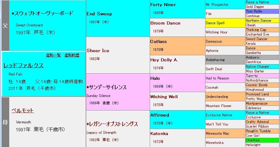 現役時代にはスプリンターズSを連覇してGⅠ2勝を挙げた名スプリンター。母のベルモットは3勝止まりであったが、母の全姉に重賞5勝のスティンガーがおり、ほかにも活躍馬多数。なかなかの良血である。社台Fの生産馬であるが、現在の繋養先はレックススタッド。初年度は種付け料80万円で132頭を集めたが、年々頭数が減り、現在の種付け養は50万円となっている。現在の出世頭は上でもちょっと書いたレッドシュヴェルトであるが、大物の出現が待たれるところ。さて、このレッドファルクスだが、実際どんな種牡馬だか知ってるファンは少ないと思うんでね。簡単に見ておこう!※2022年以降の全ての産駒が対象。