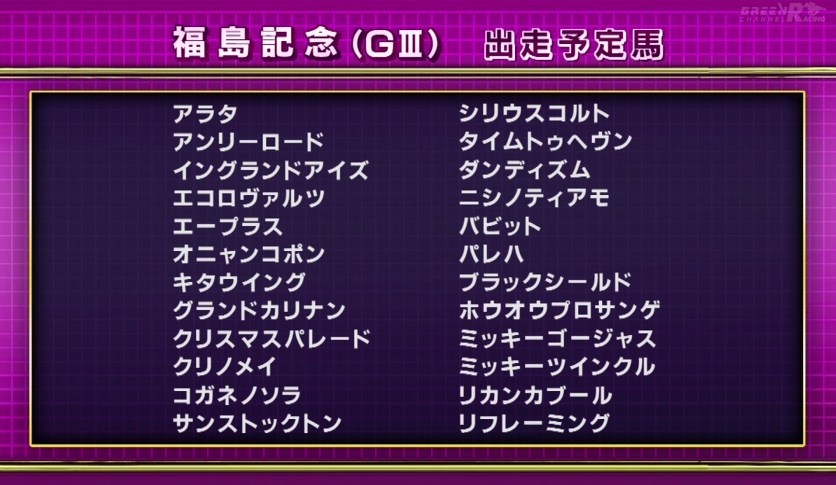勝ったフォーチュンタイムはまさかの1番人気。確かに2走前の阪急杯5着は好内容だったが、前走の関屋記念ではメイショウシンタケ(今回16番人気)にクビ差負けての9着だったし、休み明けで調教が特別良かったわけでもなく、鞍上は団野で、ハンデも微妙な56.5kg。指数的には4~5番手という感じの馬であったがなんでこんなに人気になったのだろう?まあ、それはいいとして、レースでは中団後方の外に付け、終始外々の競馬。直線も大外に出し、坂を登ったあたりから矢のように伸びて1着。