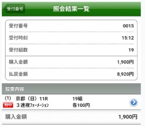 kazud424さんの三連複馬券。馬連も的中。