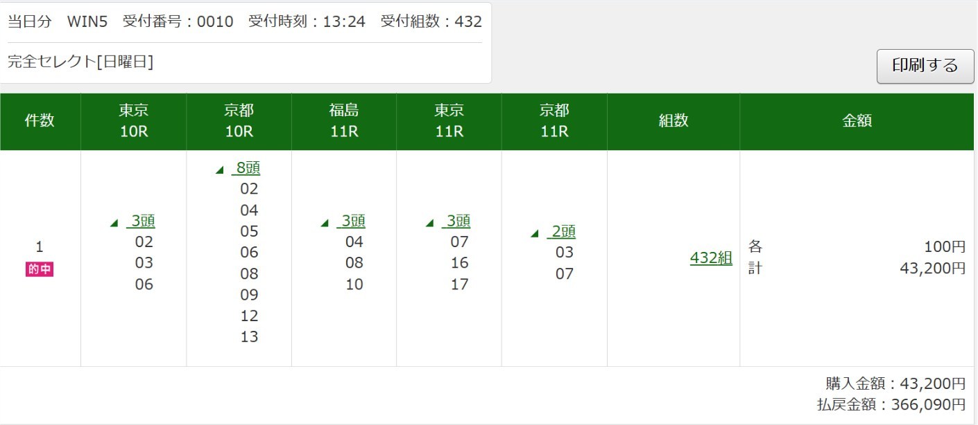 凄い!WIN5的中これで何回目やushigomeさん!