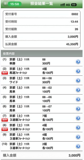 上記の激烈モッコリ馬に乗ったmomomoさんの鬼単複。払い戻し41万円超。すんげー!