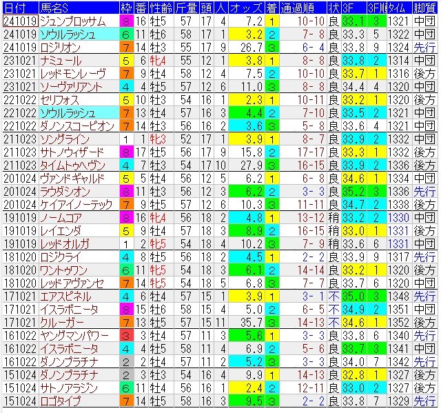 マイルCSの前哨戦・・・というわけで休み明けでも全く問題なし。というか休み明け優勢。間隔が詰まってる馬はほぼ全滅。上がり馬の場合でも1~2ヶ月は間が開いてる方がいい。
