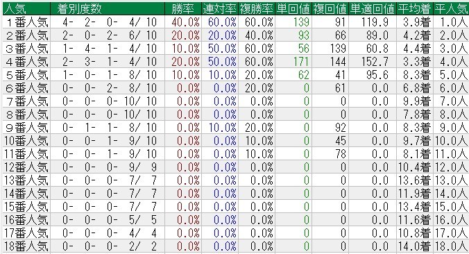 ここ4年は1番人気が連続連対中。しかし負ける時は派手に負けてるね。