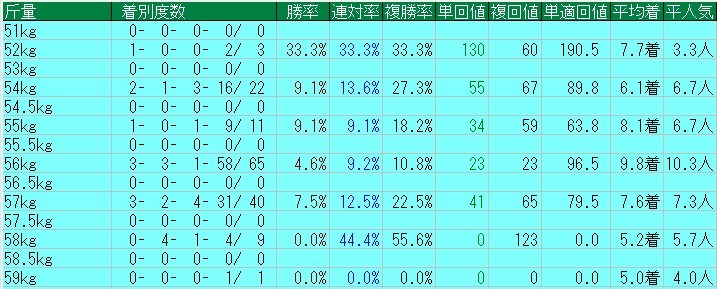 格別定。GⅠ勝ちがあると2kg増のやつね。ただ、このレースがGⅡになったのは2020年からなのでそれ以前の別定はまたちょっと違う。基本は56kgだったが、一昨年に斤量改定が行われて現在は基本57kg。非常にややこしいわけだが、結論を言うと斤量増は結構効く。今年はジャンタルマンタルとソウルラッシュが59kgを背負うわけだが・・・さてどうかな?