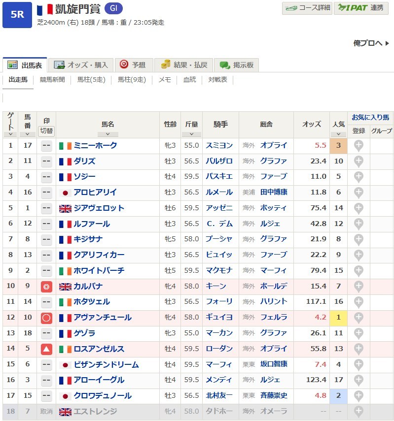 この馬は日本では認知度が低いのかnetkeibaでは穴馬扱いだねえ。
