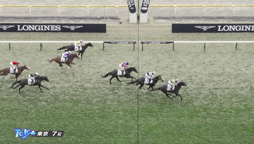 土曜7Rは芝2400mの1勝クラス戦。テンの3Fは35.4。1000m通過は59.1と締まった流れ。3~4コーナーでやや緩んだが、全体的に速いラップで時計はなんと2:23.5!速い!レースの上がりは35.9。勝ったのは中団後方待機から大外に出して差し切ったサトノパトリオット(ルメール)。この馬の上がりが最速で34.0。2着も中団から一緒に差してきたノラリクラリ。3着は直線に向いてから馬場の真ん中に出して差してきたティムール。前に行った馬には非常に辛い展開ではあったが、外差しの決着だった。