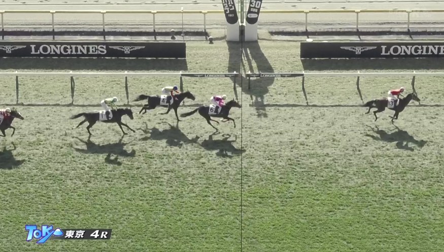 今日の4Rは芝2000mの2歳未勝利戦。3Fは36.8、1000mは61.2と落ち着いた流れ。上がりは34.1の瞬発力勝負。勝ったのは好位からアッサリ抜け出したファムクラジューズ。2着も好位から追ったアイムイン。3着も前目から脚を伸ばしたタイドグラフ。時計は1:59.9。速いねー。