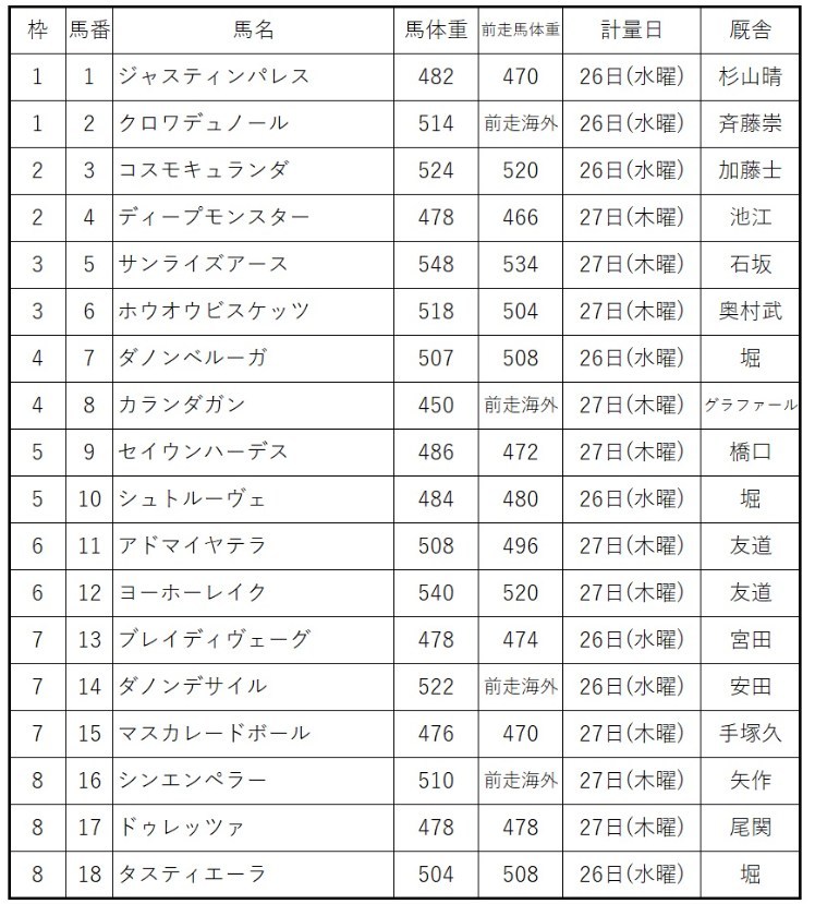 ・シンエンペラー 去年のJCより+22kg(輸送アリ)