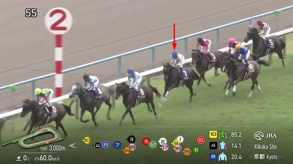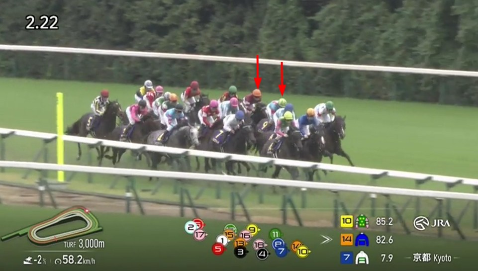 今回、3コーナー手前の坂の上りから一気にペースが上がったわけだが、