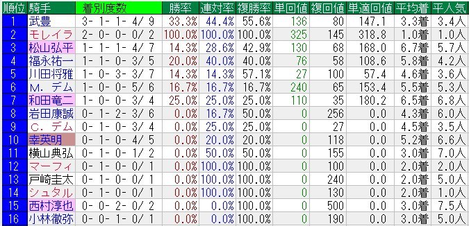 関西の上位騎手が強い。武豊、松山、川田注意。