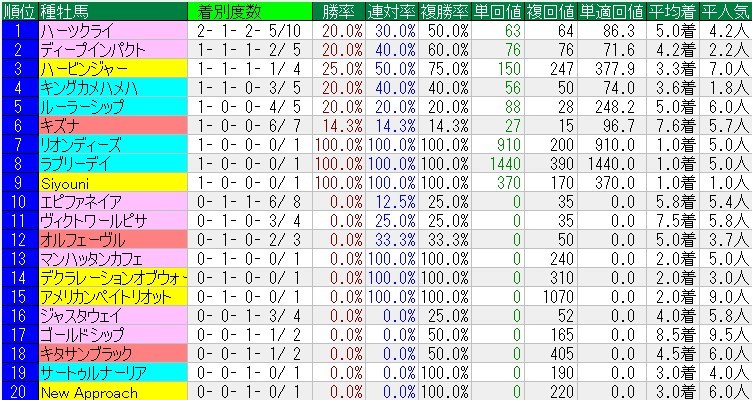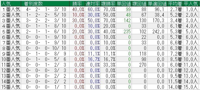 どへー!東スポ杯ほどではないが・・1番人気強いねー。2~3番人気も強く、勝ち馬は全て5番人気以内。少頭数で行われることが多いのを考慮しても堅いレースと言えるだろう。ただ、頭は堅いものの・・・9番人気、10番人気の馬が2着に来ており、ヒモは荒れないこともない。