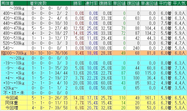 2歳秋の重賞だが・・・ある程度の馬格は必要。460kgは欲しいところ。馬体の増減では馬体増が優勢。特に二桁増の馬は好成績。