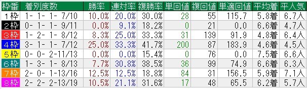 秋の京都最終週に行われるレース。内外はフラットな印象。外枠でも割り引く必要はない。