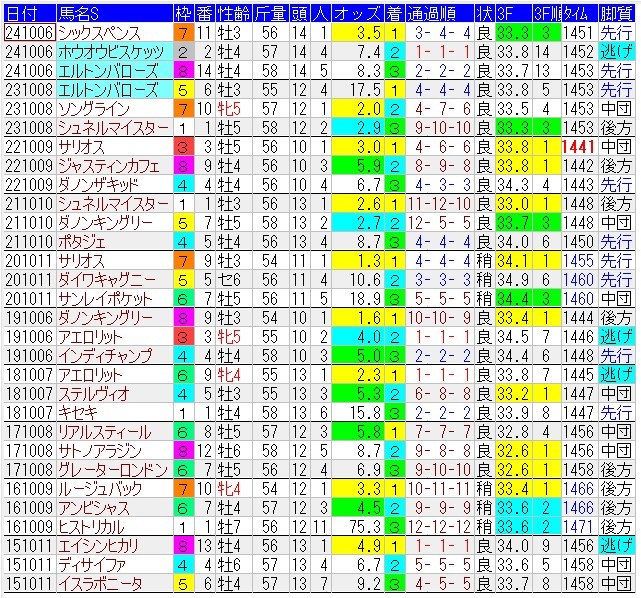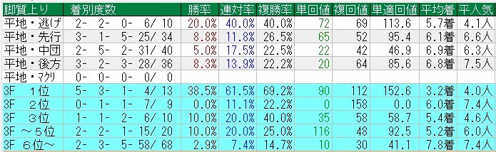 前後互角・・・やや差しが優勢か。後ろからバンバン飛んでくるレースだが、同時に逃げ馬が強いレースでもある。上がり1位はかなり強い。