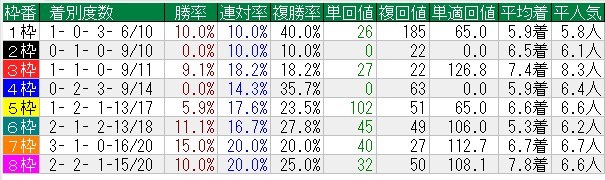 開幕馬場で行われるレースだが・・・ご覧のように真ん中から外の成績がいいぞ。