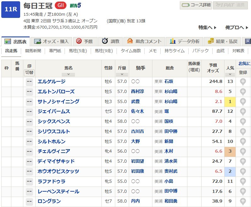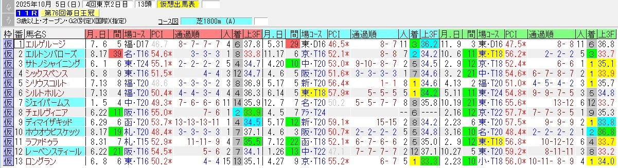 【毎日王冠2025データ分析】東京芝1800mで行われる別定GⅡ毎日王冠!今年はサトノシャイニング、ホウオウビスケッツ、チェルヴィニアが人気になりそうだが当然大穴狙いで逝く!枠順・脚質・馬体重・騎手・血統・前走ローテ・上がり3F最速は?狙いはリピーター?穴馬候補はエルトンバローズ、ロングラン、シルトホルン!