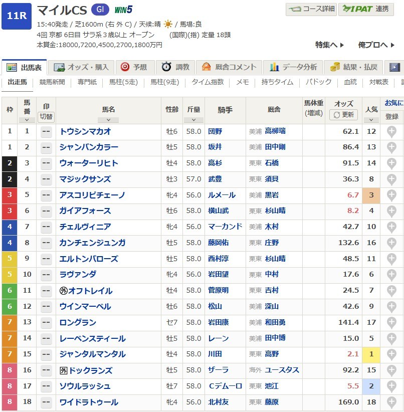 【マイルCS2025予想】京都芝1600mで行われる秋のマイル王決定戦!GⅠマイルチャンピオンシップ!今年はkジャンタルマンタル、ソウルラッシュ、アスコリピチェーノが人気だが当然大穴狙って逝く!展開・隊列・ペースはどうなる?逃げ馬は・・・不在?こりゃスローになる??ってことは前残りか?浅次郎の狙いはこの馬だ!