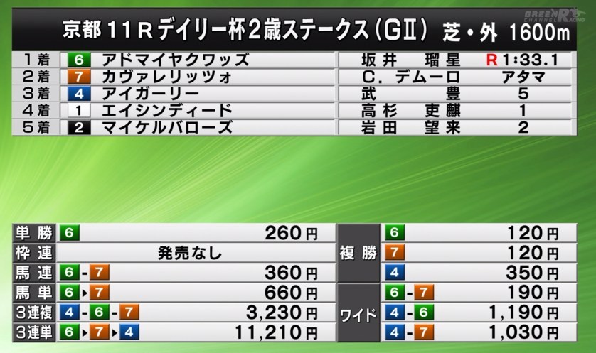 人気の2頭、アドマイヤクワッズとカヴァレリッツォの壮絶な一騎打ち。