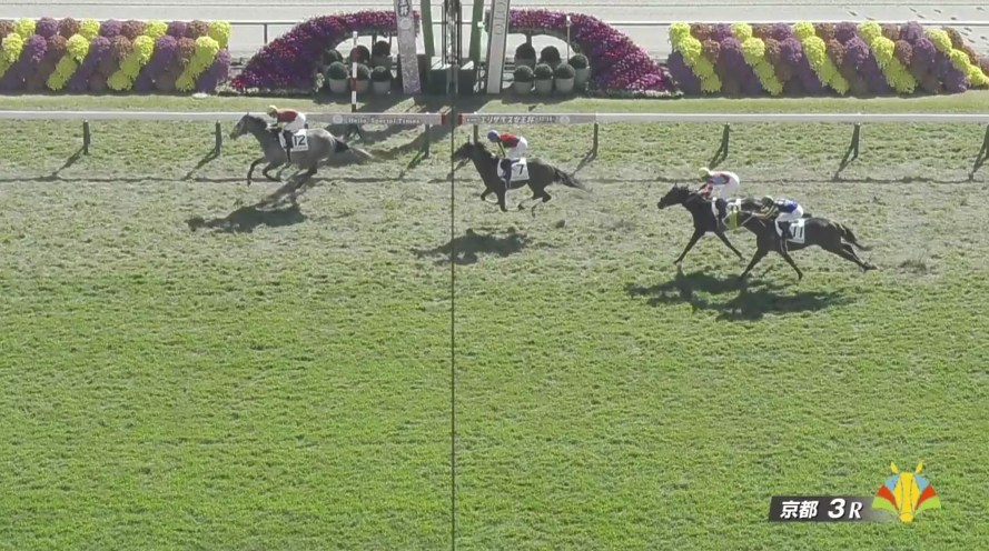 今日の3Rは芝1600の2歳未勝利戦。3Fは34.9。1000mは58.4。2歳戦にしてはかなり速いペース。上がりの掛かるレースになったわけだが、レースの上がりは35.5。時計は1:33.9。速いねえ。2番手追走から早め先頭に立ったルメール騎乗のエイシンティザーがそのまま押し切って1着。中団馬群の中から抜け出してきたクリスチャンのアルヴァンドルードが2着。中団から外に出して差してきたムスクレストが3着。見た目内は荒れてるが、勝ち馬は内を通して止まる気配はなかった。あまり気にしなくて良さそう。
