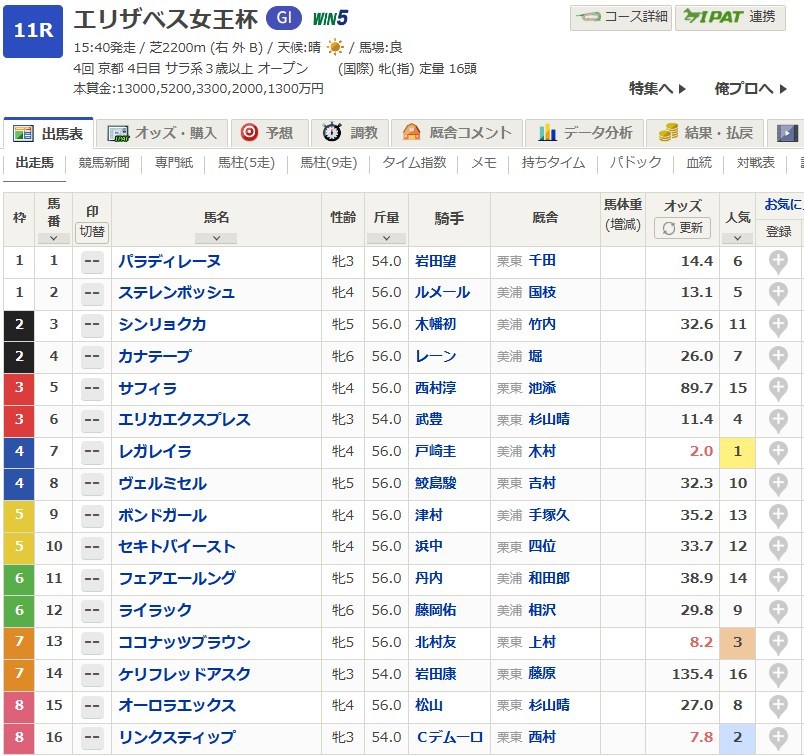エリザベス女王杯2025予想!大穴狙いで逝くぜぇ!
