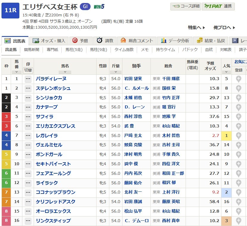 今回はエリザベス女王杯の