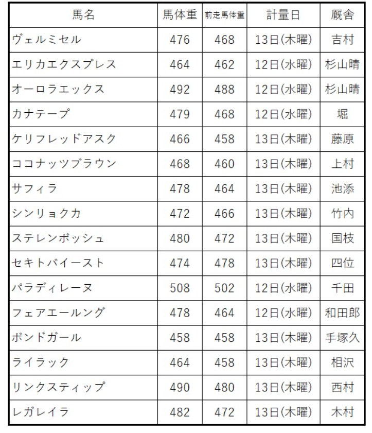 ■エリザベス女王杯2025調教後の馬体重