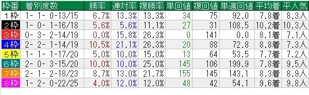 阪神外回りの1800m戦。枠の有利不利はあまり無いわけだが、レースの傾向しては内枠はイマイチだねー。