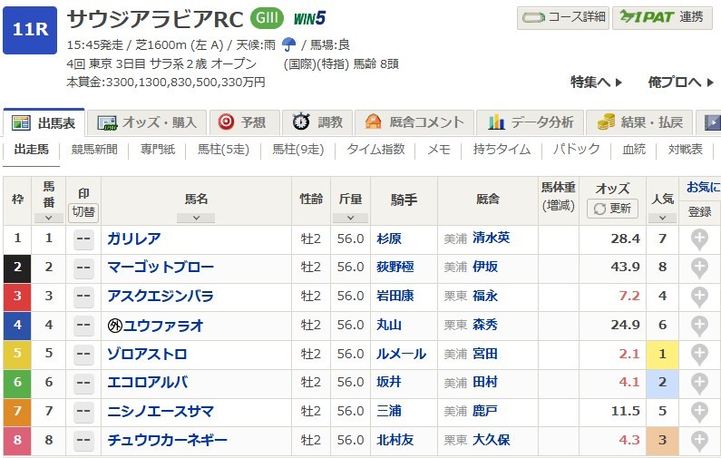 【サウジアラビアRC2025予想】東京芝1600mで行われる2歳GⅢサウジアラビアロイヤルカップ!今年はゾロアストロ、エコロアルバ、チュウワカーネギーが人気だが当然大穴狙いで逝く!展開・隊列・ペースはどうなる?逃げるのはマーゴットブロー?超スローになる?馬場は内前有利?差しは効く?浅次郎の狙いはこの馬だ!