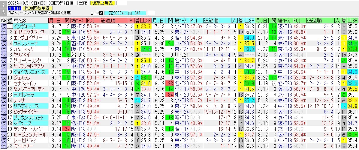 今年はオークス上位組のブッツケが不在。なので・・・必然的にローズS、紫苑Sの惜敗組が狙い目となる。