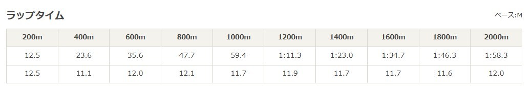 11秒台前半のラップが一度もないのがその証拠だ(2F目除く)。
