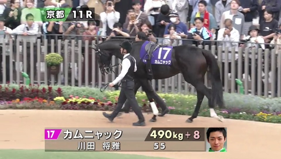 さて、ダントツ人気だったカムニャックの敗因は何だったのか?これはもう、巷でも言われてるように「入れ込み」だと思う。発汗すごかったし、ゲートでも暴れてたしね。じゃあ、なぜ入れ込んだのか?これも・・・スタンド前発走が原因だとか、川田が乗ったらスイッチが入ったとか、色々言われてるが定かではない。他にも前走ローズSのダメージが抜けていなかったという説もある。川田が乗ると目一杯の競馬をするので疲れが残る説である。