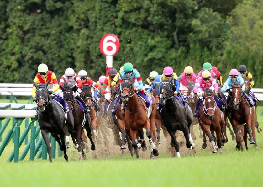 スタート!出遅れた馬はおらず五分のスタート。スタートが良かったのは、1枠のダノンフェアレディ、赤帽子のケリフレッドアスク、オレンジ帽のインヴォーグなど。さあ、行くのはどの馬だ?やっぱりケリフレッドアスクか?