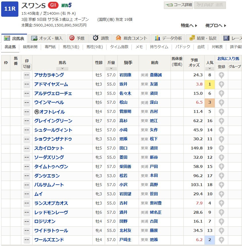 【スワンS2025データ分析】京都芝1400mで行われる別定GⅡスワンS!今年はアドマイヤズーム、ワールズエンド、ウインマーベルが人気だが当然大穴狙いで逝く!データでは差し追い込み有利!枠はフラット!馬体重・騎手・血統・前走ローテ・上がり3F最速は?穴馬候補はショウナンザナドゥ、ソーダズリング、レッドモンレーヴ!