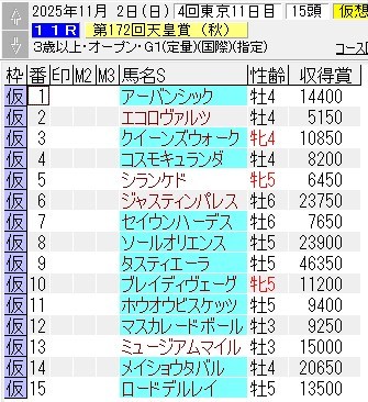 ちなみに、これは今回の天皇賞秋の収得賞金一覧。